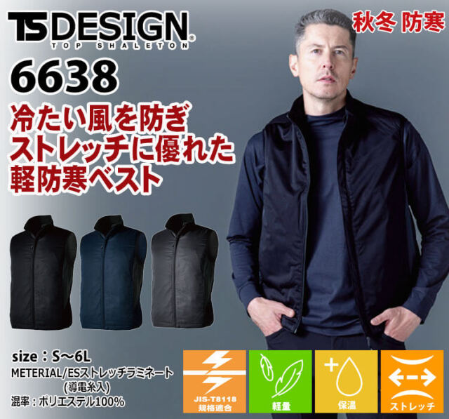 | 製品名: | 防寒服 TS DESIGN TSデザイン ES防風ストレッチライトウォームベスト 6638 作業着 軽防寒 ベスト 秋冬 |