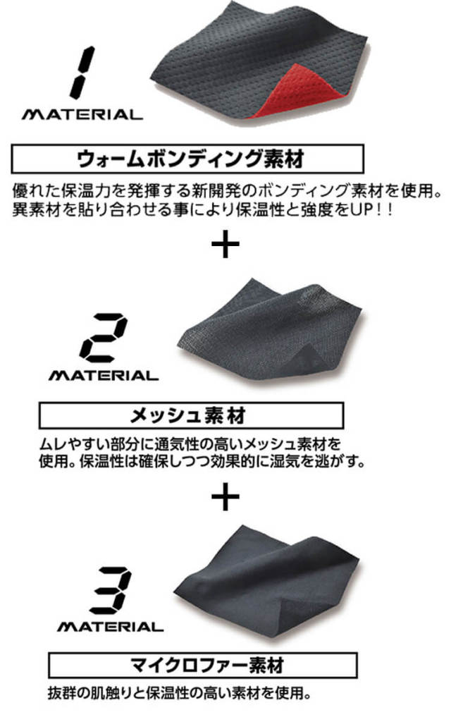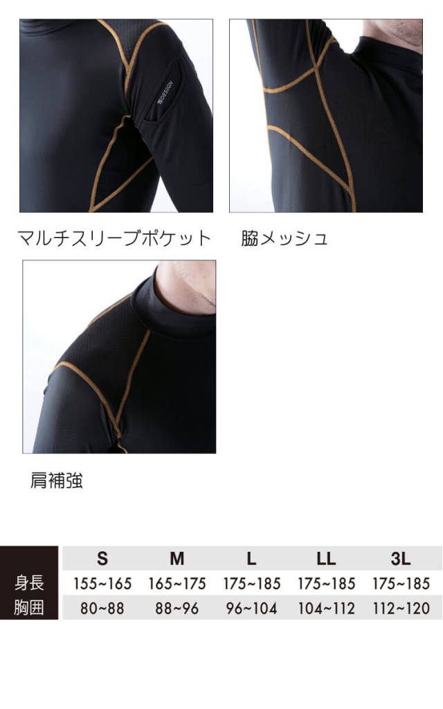 〇肩や腰部分に補強パーツを使用したプロ仕様インナー。