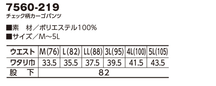 | 製品名: | 作業服 寅壱 チェック柄カーゴパンツ 7560-219 |