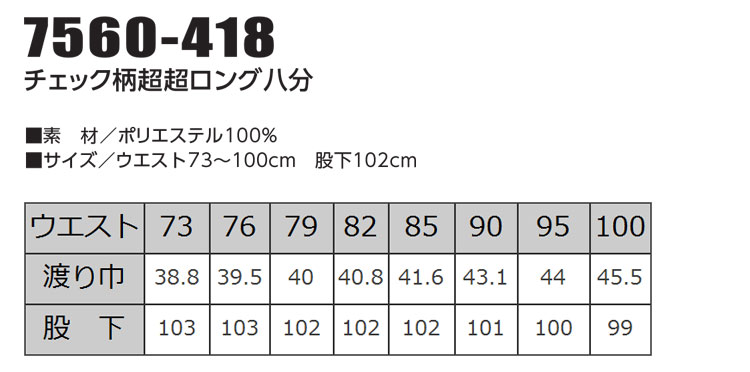 | 製品名: | 作業服 寅壱 チェック柄超超ロング八分 7560-418 |