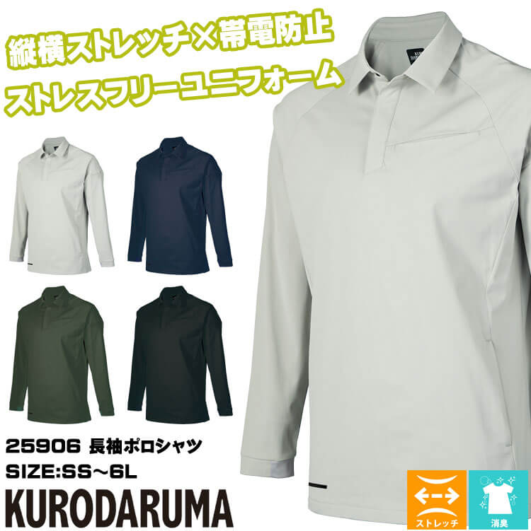 | 製品名: | クロダルマ KURODARUMA 長袖ポロシャツ 25906 作業服 作業着 ストレッチ 帯電防止 |