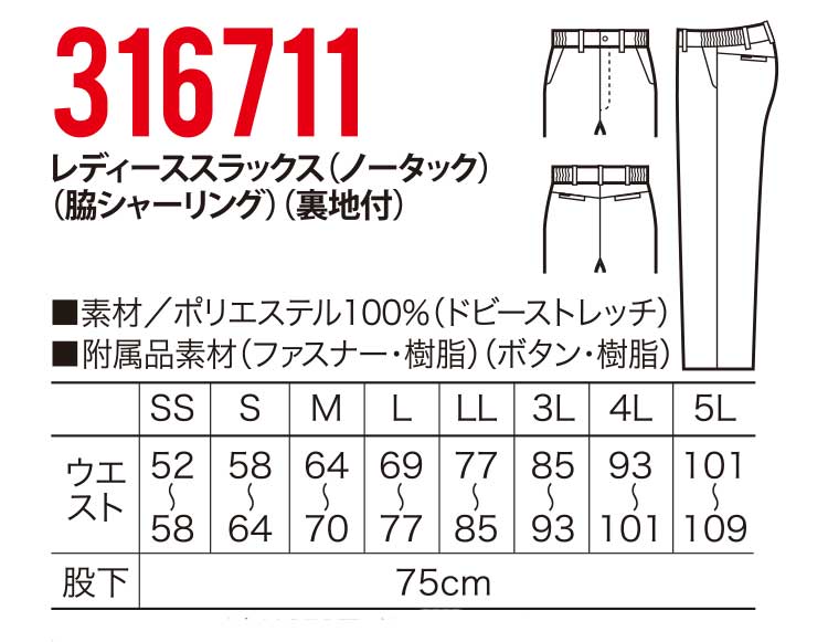 作業服 KURODARUMA クロダルマ レディーススラックス(ノータック) 316711 春夏