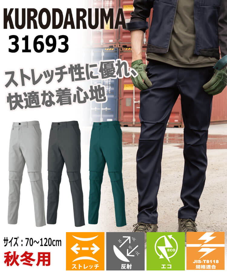 | 製品名: | クロダルマ KURODARUMA スラックス 31693 作業着 パンツ ストレッチ 制電 秋冬 |