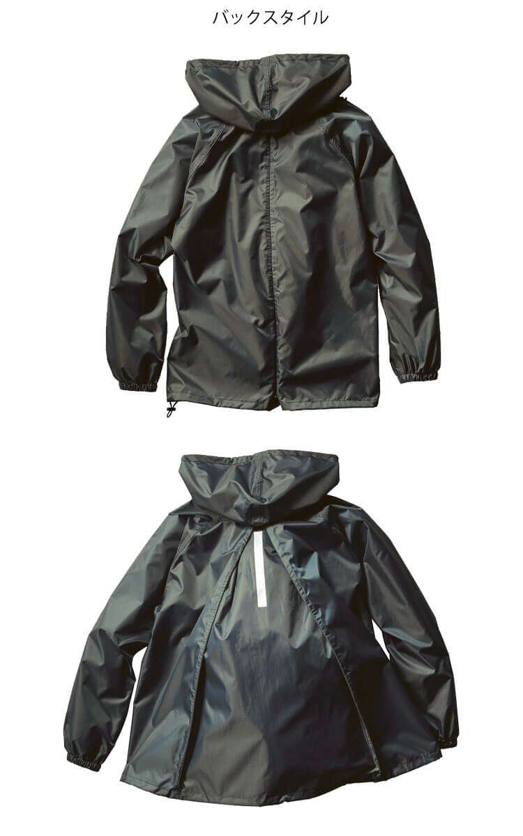 自転車やバイクで通勤・通学に適した防水性と透湿性に優れたレインコート。リュック等を背負ったまま着用する事もできます。背中のマチ部分には反射プリントを採用し安全性をアップ。