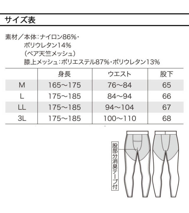 膝上メッシュ:ポリエステル87%・ポリウレタン13%