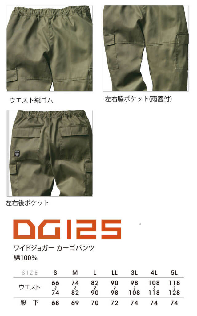 クロダルマ D.GROW ディーグロー ワイドジョガーカーゴパンツ DG125 作業着 作業服 通年 アウトドア