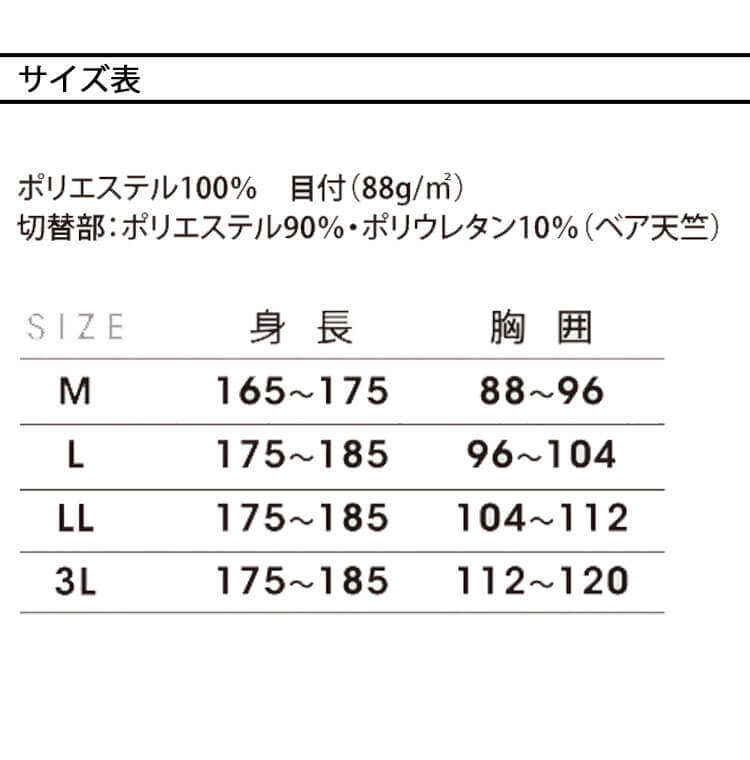 切替部:ポリエステル90%・ポリウレタン10%(ペア天竺)