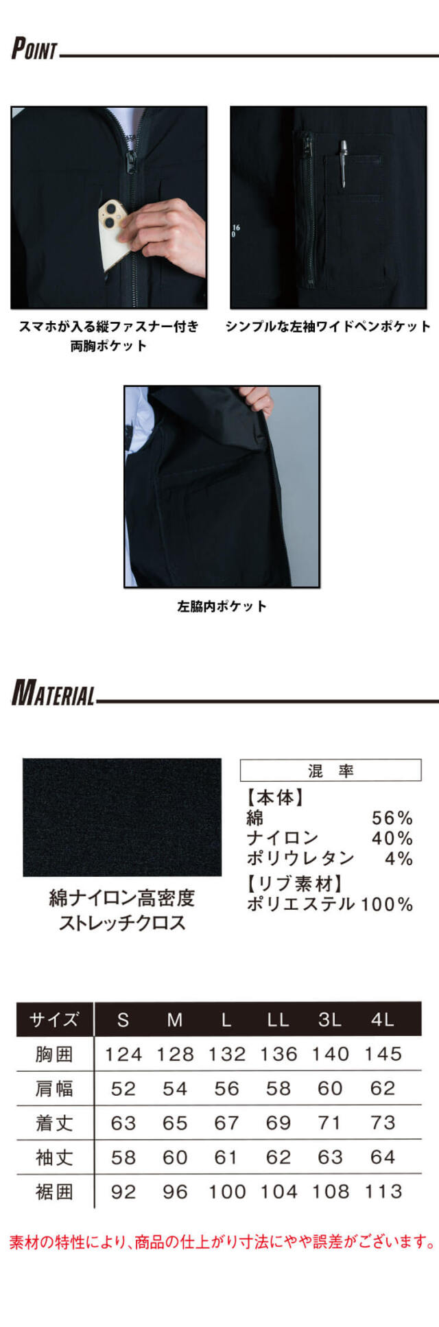 ・素材 : 綿ナイロン高密度ストレッチクロス