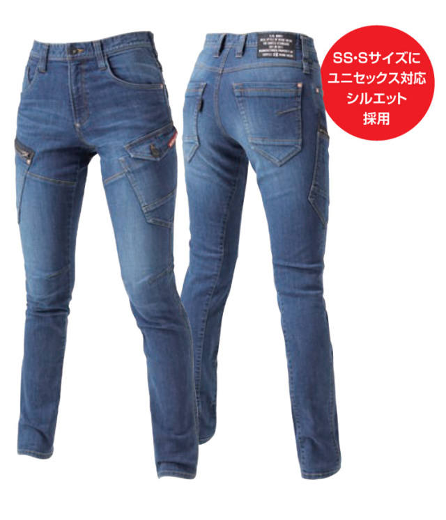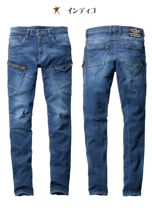 ・素材 : コーデュラストレッチデニム(伸長率27%)、製品洗い、ブラスト加工