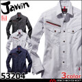 ブラック×レッドのコンビファスナーが斬新なジャウィン長袖シャツ。ドット柄の変わり織り素材とレッドの付属使いでジャウィンらしさを演出した53200シリーズ作業服です。