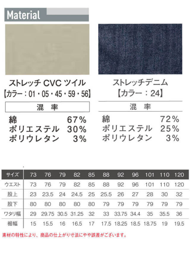 ・素材 : ストレッチ CVC ツイル