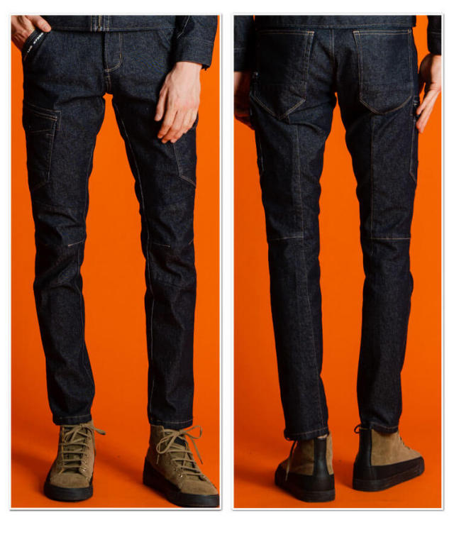 ■デニム商品には10.3オンスのボリューム感の高いストレッチ素材を使用。伸長率(ヨコ)約56%、伸長回復率(1時間後)約95%を誇る驚異的なハイパワーストレッチ性能を有し、抜群の動きやすさを発揮すると共に、型崩れの少ない優れた形態安定性能を発揮します。