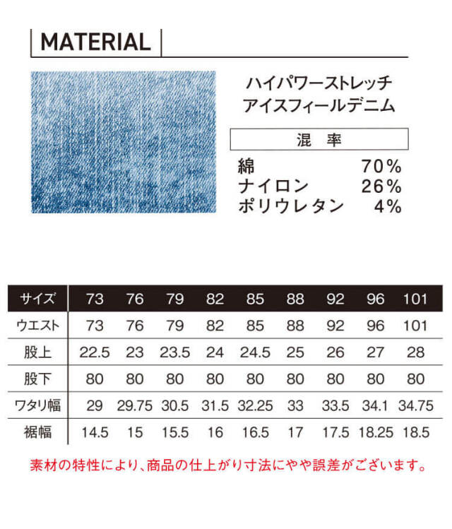 ・素材 : ハイパワーストレッチアイスフィールデニム