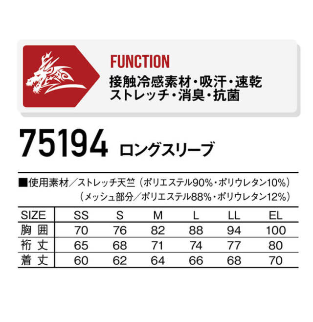 | 製品名: | ジードラゴン Z-DRAGON 接触冷感 ロングスリーブ 75194 コンプレッション インナー 自重堂 |