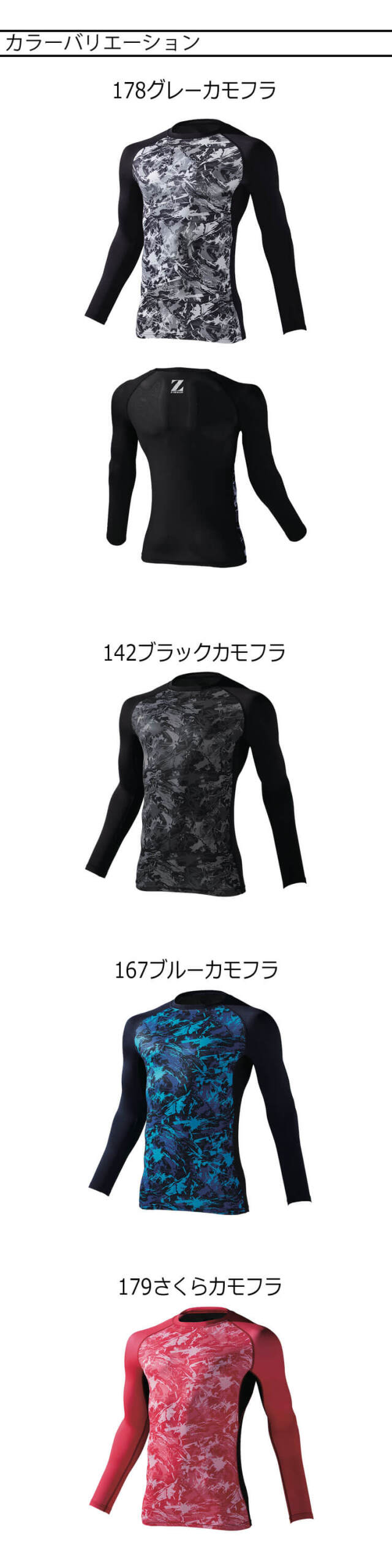 142ブラックカモフラ・167ブルーカモフラ・179さくらカモフラ・178グレーカモフラ