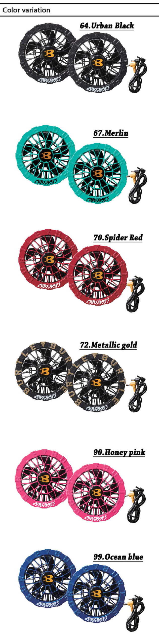 ・カラー :35.ブラック 64.アーバンブラック 67.マーリン 70.スパイダーレッド 72.メタリックゴールド 90.ハニーピンク 99.オーシャンブルー