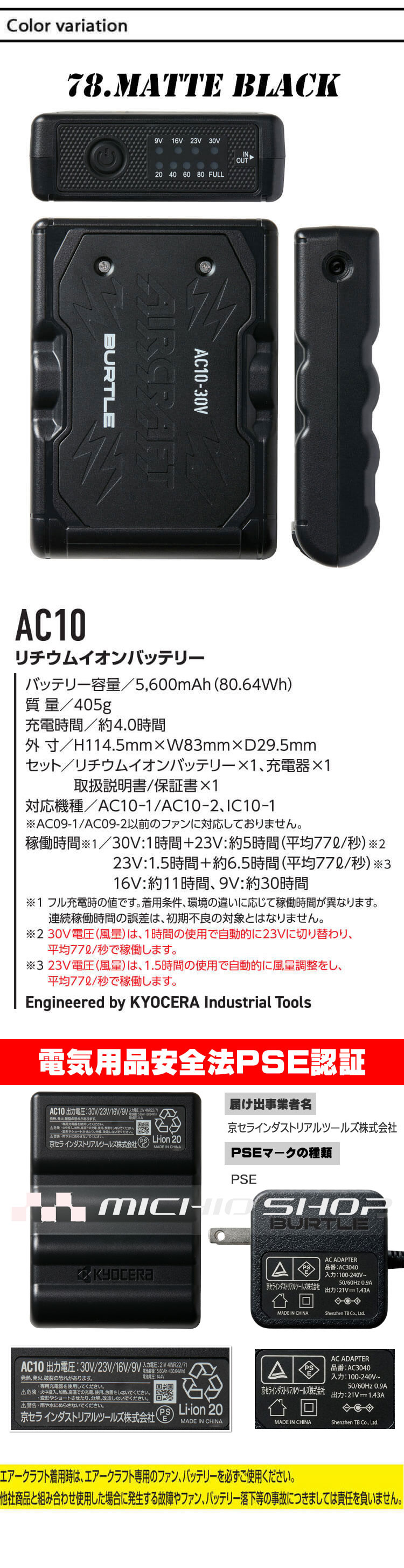 ★AC10 リチウムイオンバッテリー