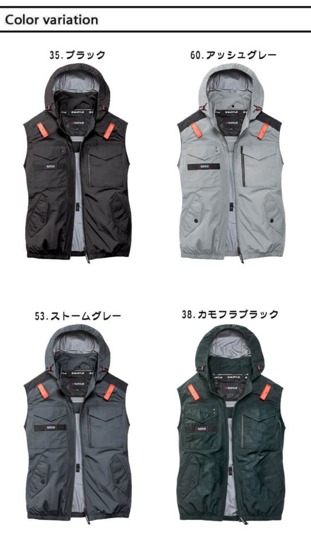 タクティカルな収納性がポイントのフルハーネスにも完全対応したユーティリティ性の高い大型フーディ装備のサイドファンモデルです。炎天下での現場作業や工場内の高温環境および屋内であってもエアコン等の空調設備が設置できない場所では、熱中症予防をはじめ暑さによる作業効率の低下や災害防止などさまざまな対策が緊急かつ重要な課題となっています。エアークラフトは、ワークベストに電動ファンを装備。衣服内に空気を取り入れて循環させることで体表面の汗が蒸発、その気化熱で体を冷やして清涼な着心地を提供します。バートルの商品全バリエーション取り揃え、最短翌日発送のミチオショップ。暑さ・熱中症対策と節電の両立を目指して、ファン付き作業着、バッテリー、ファン、インナー、付属品まで全て取り揃えております。