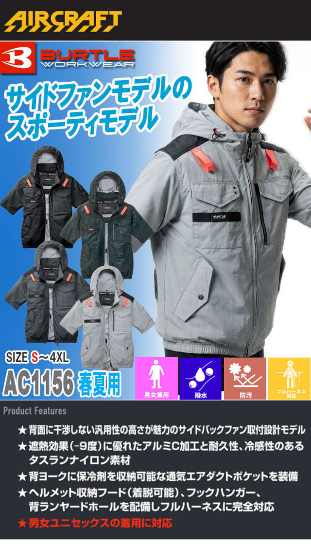 ☆ファン付き作業着 AC1156(半袖ブルゾン)大人気デザイン!! 【AC1156 AIRCRAFT エアークラフト 半袖作業着 】 です。