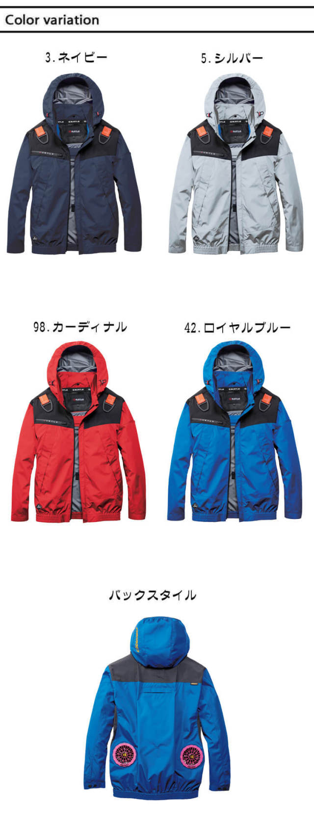 洗い替えにもう1着ファン付き作業着をご用意していただければ便利です。