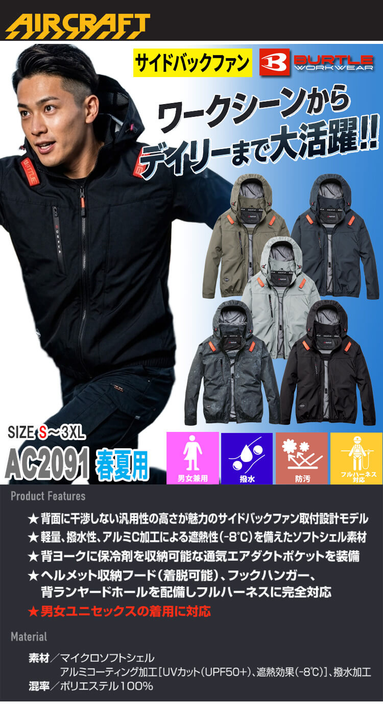 | 製品名: | バートル BURTLE エアークラフト 長袖ブルゾン(ファンなし) AC2091 AIRCRAFT |