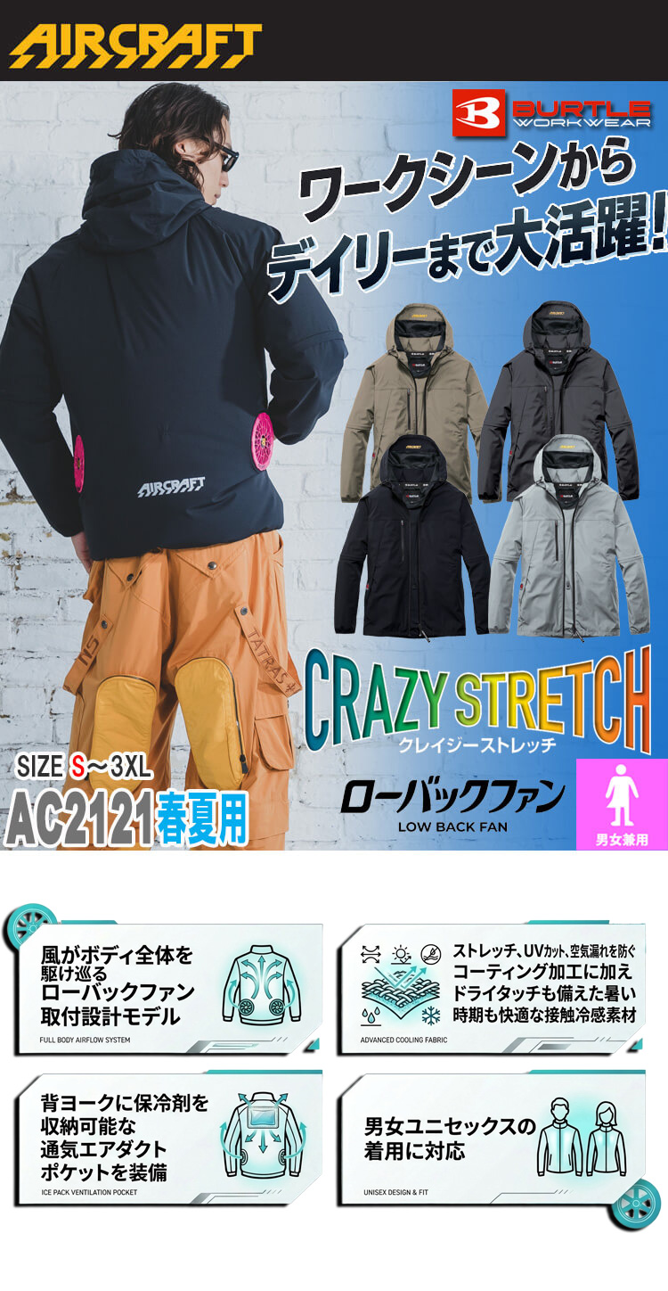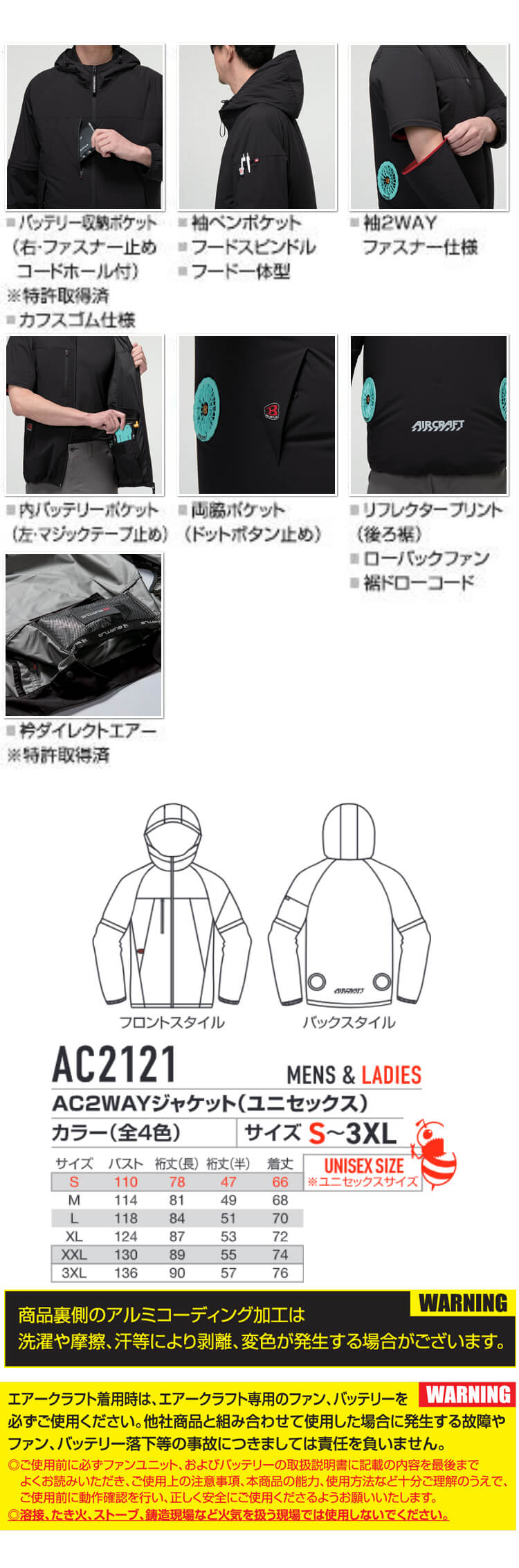 ☆ファン付き専用作業着 AC2121(長袖ブルゾン)(半袖ブルゾン)大人気デザイン!! 【AC2121 ファン付き専用2WAY作業着 AIRCRAFT エアークラフト 長袖・半袖作業着 】 です。