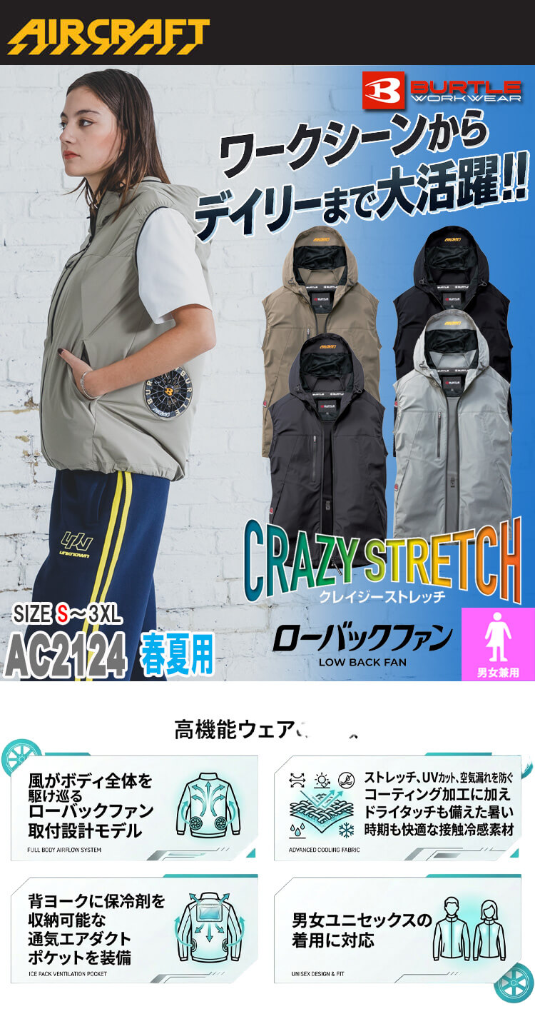 | 製品名: | バートル BURTLE エアークラフト ベスト(ファンなし) AC2124 ローバック AIRCRAFT |
