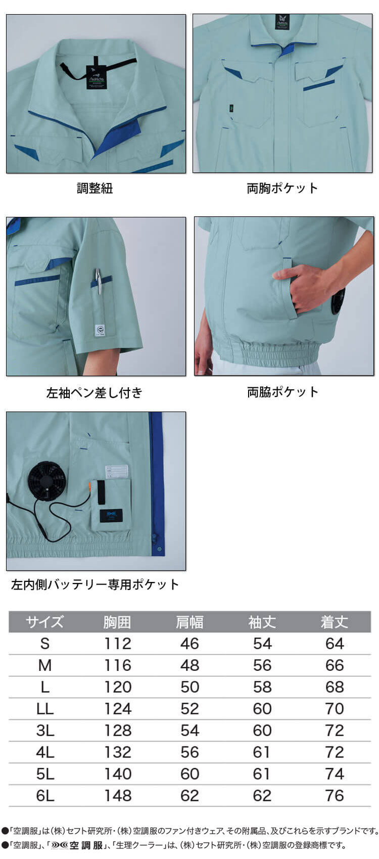 【サイズ6L 着丈 76 肩幅 62 胸囲 148 袖丈 76 】