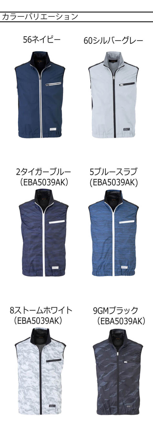 ☆空調風神服 EBA5039A/EBA5039AK(ワークベスト)大人気デザイン!! 【EBA5039A/EBA5039AK 空調風神服 ポリエステル100% ベスト作業着 】 です。
