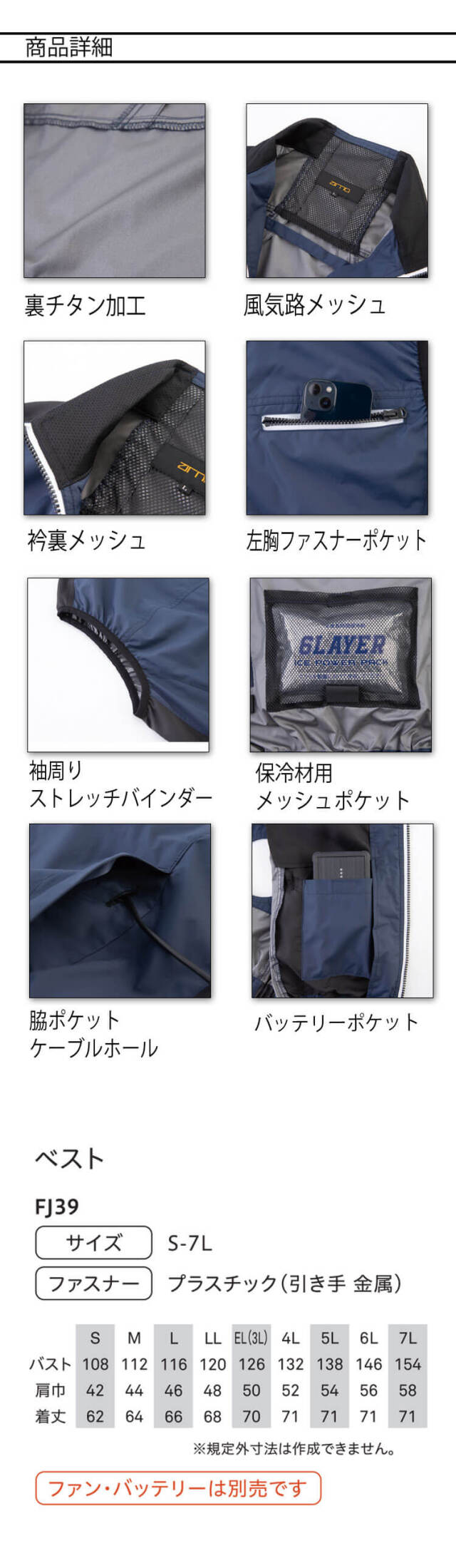 【商品名】空調風神服ベスト S・M・L・LL・EL・4L・5L・6L・7L