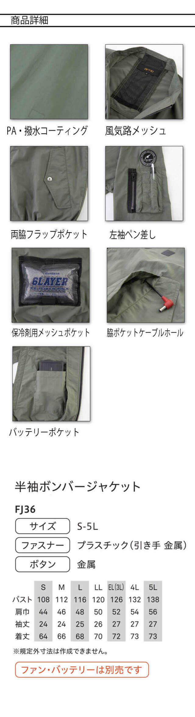 【商品名】空調風神服半袖ボンバージャケット S・M・L・LL・EL・4L・5L
