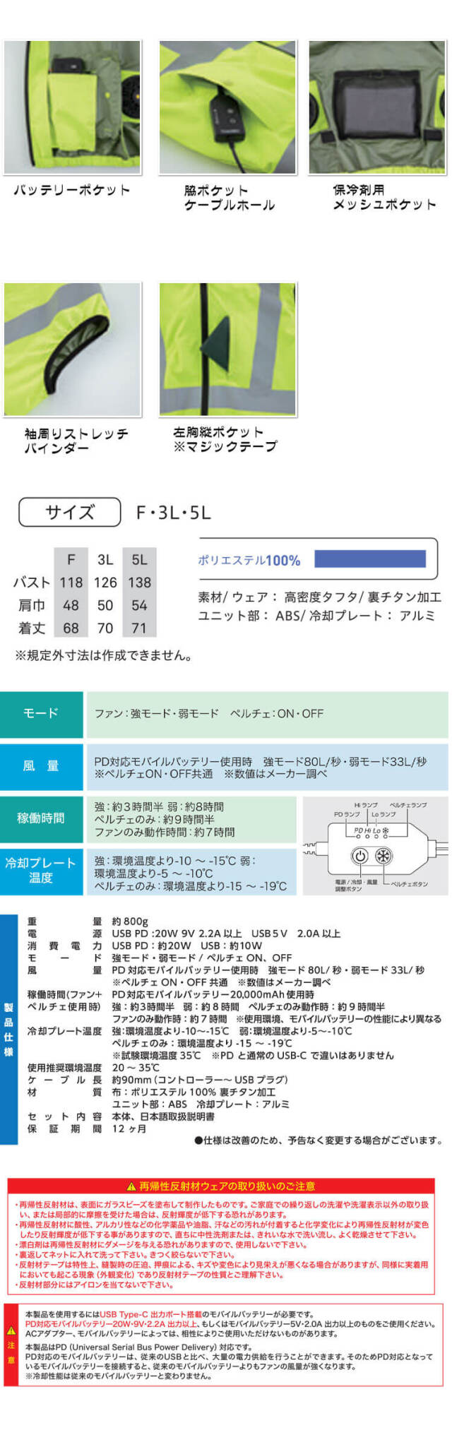 ・セット内容 :ベスト×1 冷却プレート×1 ファン×2 取扱説明書×1