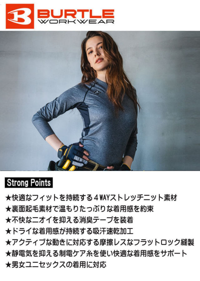 寒い中でのワークシーンに欠かせない保温性とドライな着用感が快適に持続するホットコンプレッションニットウェアです。