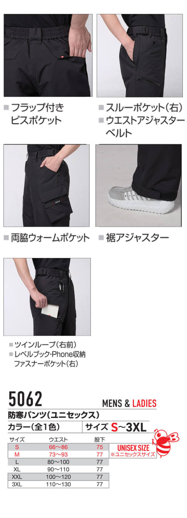 [12月末入荷先行予約]BURTLE バートル 防寒パンツ 5062 秋冬用 軽防寒 サイズS~XL 2025年秋冬新作