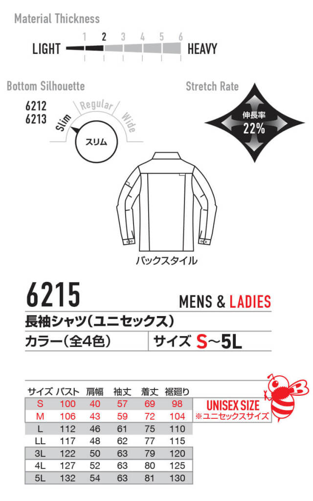 BURTLE バートル 長袖シャツ(ユニセックス) 6215 春夏 サイズS~3L
