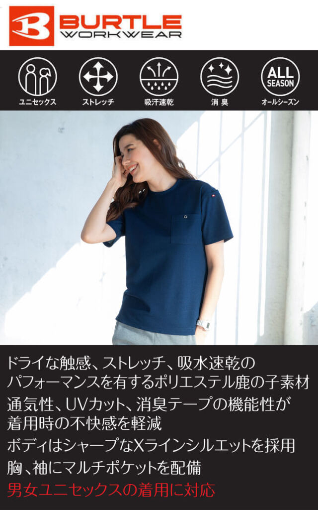 | 製品名: | BURTLE バートル フォーマルTシャツ(ユニセックス) 657 半袖 ストレッチ 消臭 |
