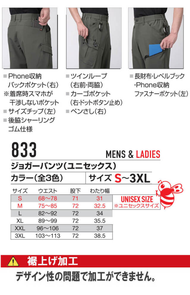 | 製品名: | BURTLE バートル ジョガーパンツ 833 秋冬用 |