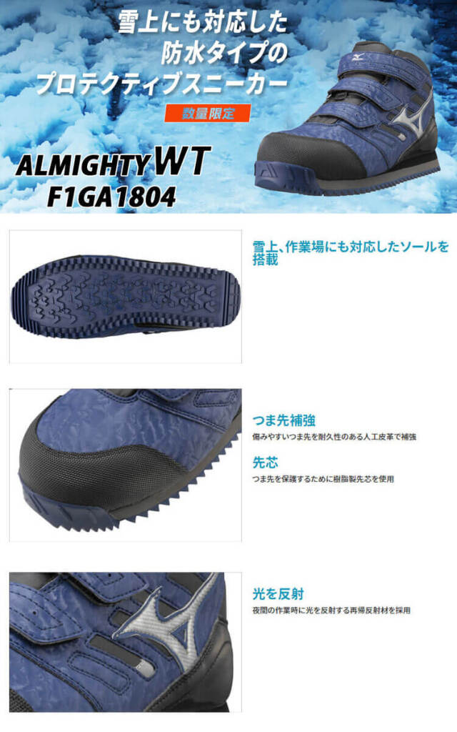 ミズノのオールマイティWT限定商品を販売しています。雪上作業に対応したプロテクティブスニーカーです。