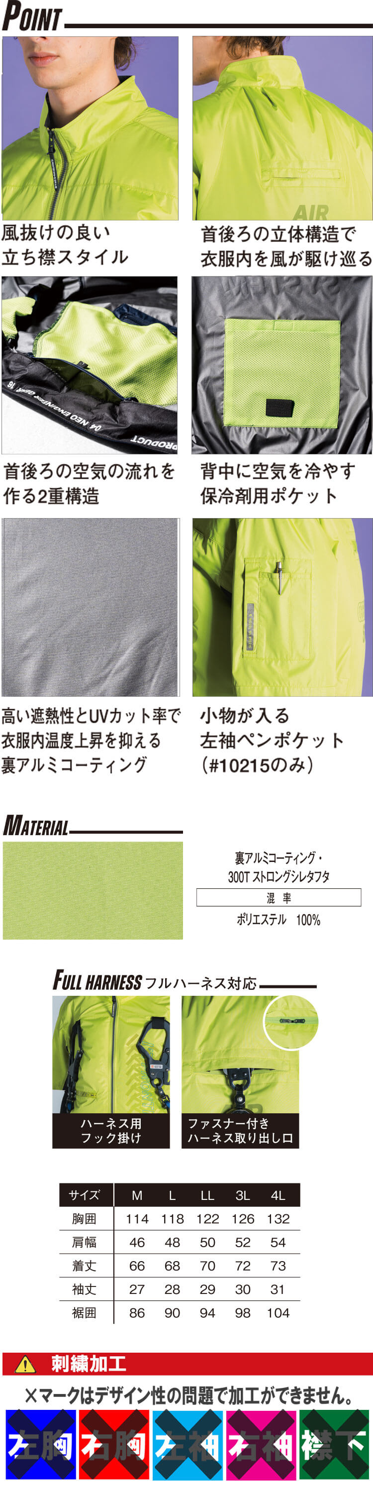 10215 ポリエステル100%のフルハーネス対応・ユーロテイストA.S.半袖ジャケットとファン・バッテリーをセットでお届け!
