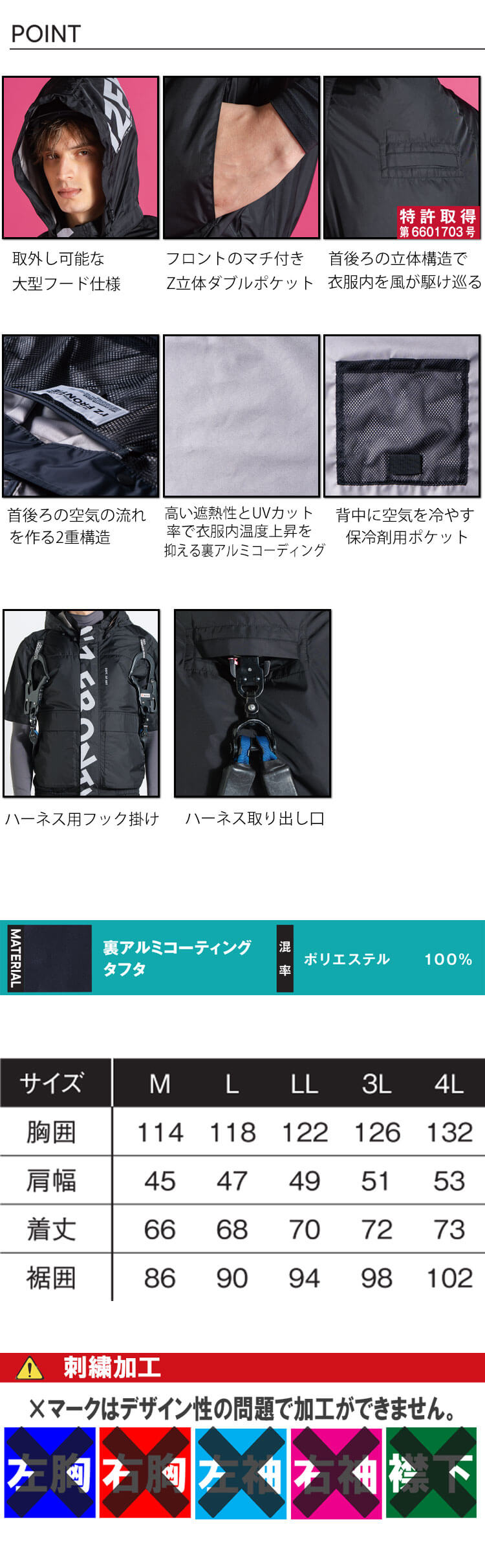 ・フードは取り外し可能なフルハーネス仕様。