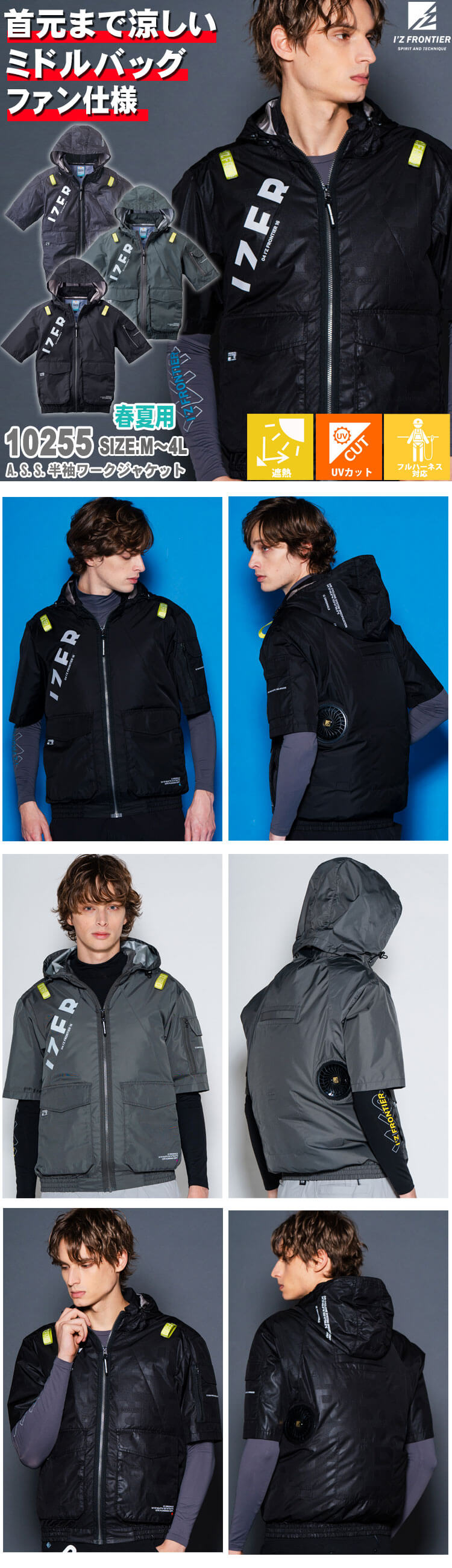 10255 ポリエステル100%の遮熱エンボスA.S.S.スポーティー半袖ワークジャケットをお届け!