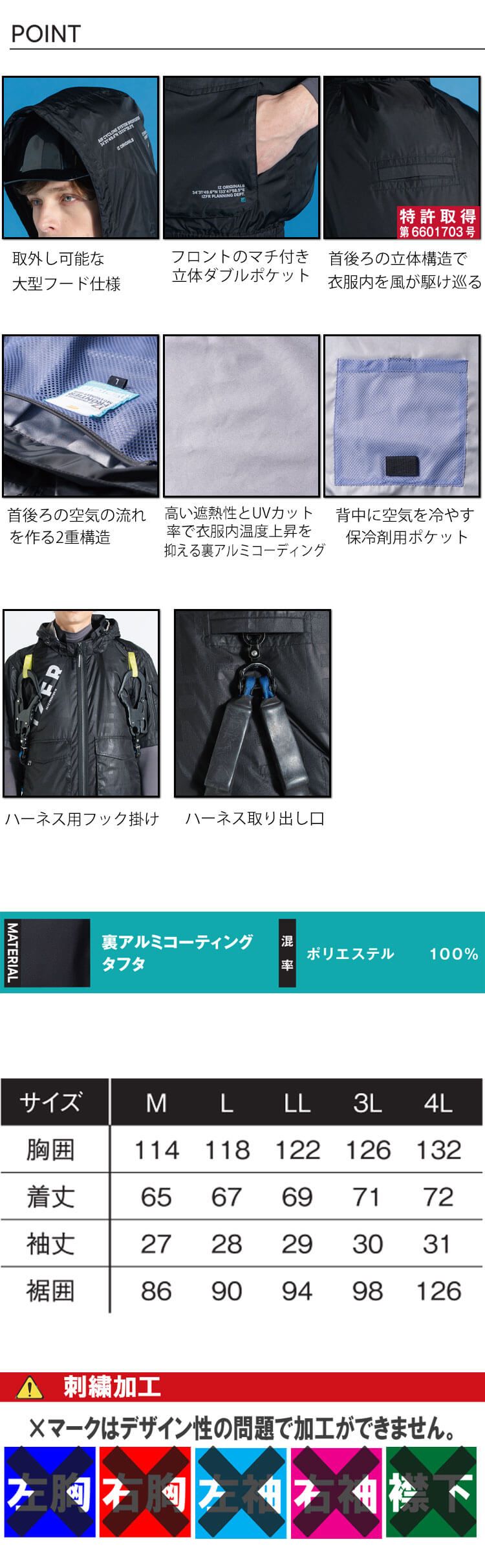 | 製品名: | アイズフロンティア 半袖ワークジャケット(ファンなし) 10255 フード パーカー エアーサイクロンシステム |