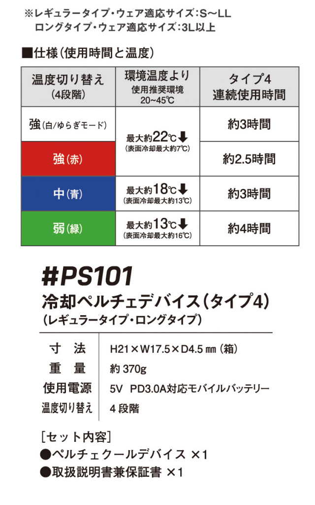 | 製品名: | アイズフロンティア 冷却ペルチェデバイス(タイプ3)+バッテリーセット PS101+90018 |