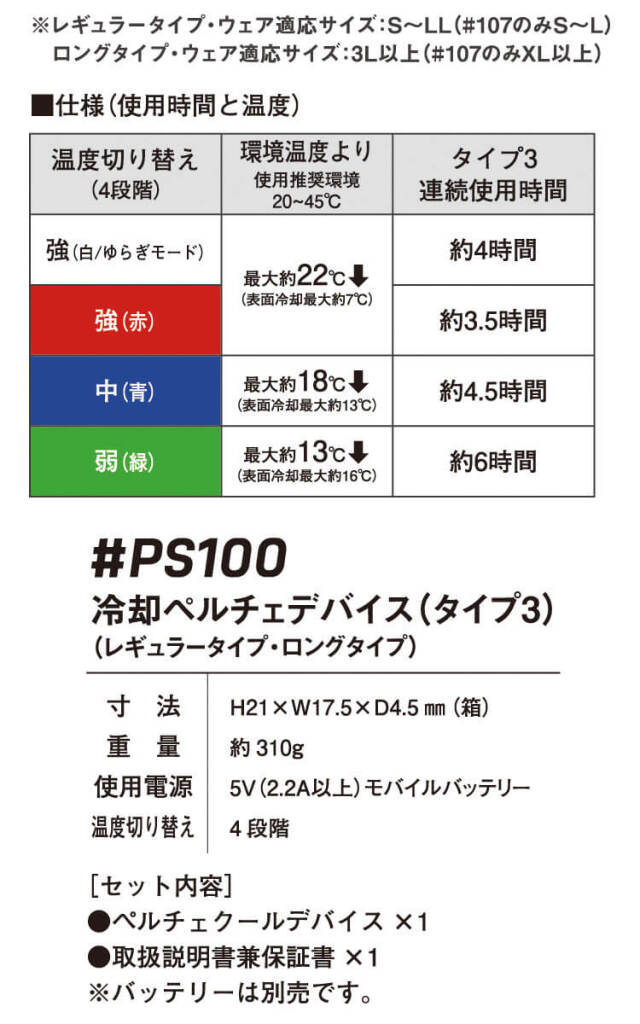 ・セット内容 :ジャケット×1 ペルチェデバイス×1 取扱説明書×1