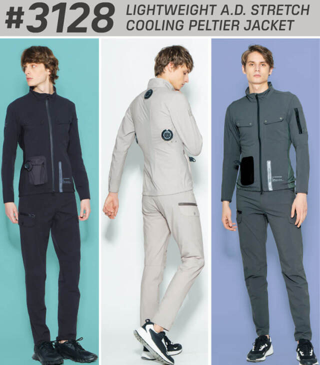 3128+PS100 冷却ウェア ライトウェイトA.D.ストレッチ冷却ペルチェジャケットとペルチェデバイスをお届け!
