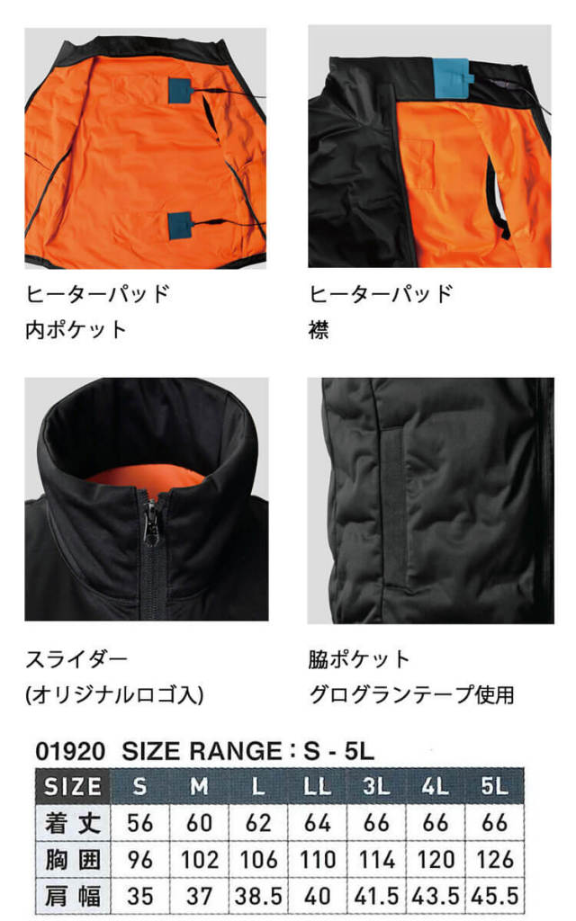 ★衿、背中にヒーターパッド収納内ポケット仕様