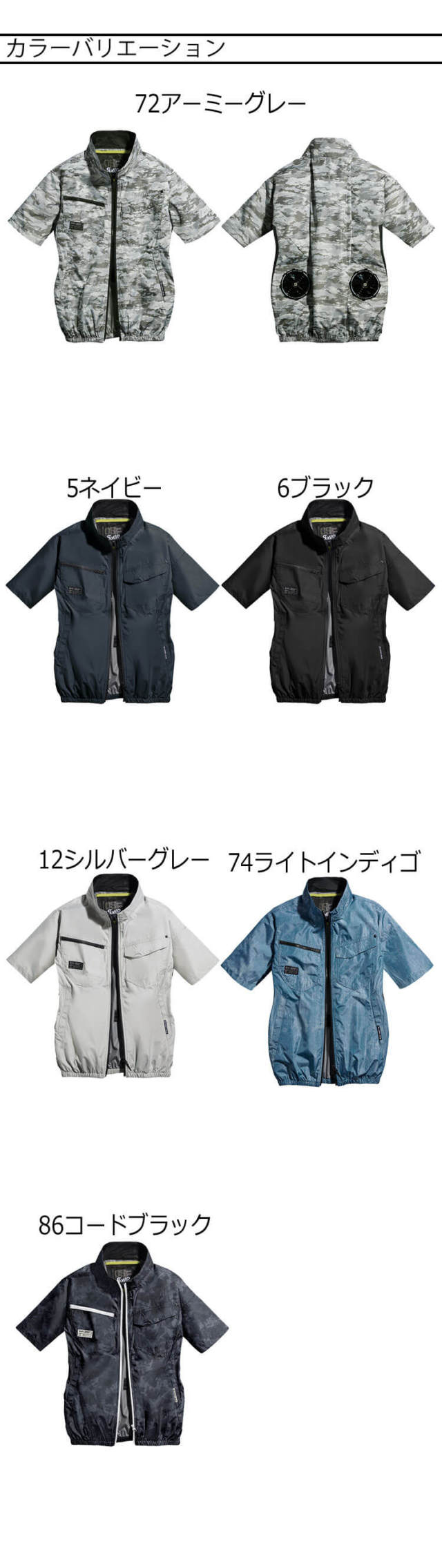 5ネイビー・6ブラック・12シルバーグレー・72アーミーグレー・74ライトインディゴ・86コードブラック