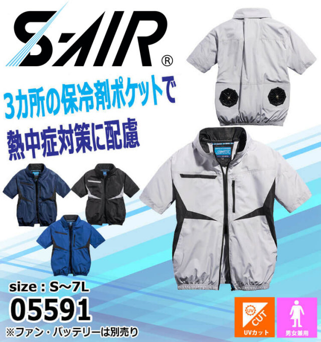 実用性抜群なシンメンエスエア半袖ジャケットです。肌ダメージを軽減する遮熱・UVカット、首回り全体からの風抜けを重視したデザインの快適ワイドネック仕様です。首回りなど3カ所の保冷剤ポケットで熱中症対策に配慮したファン付き作業着です。