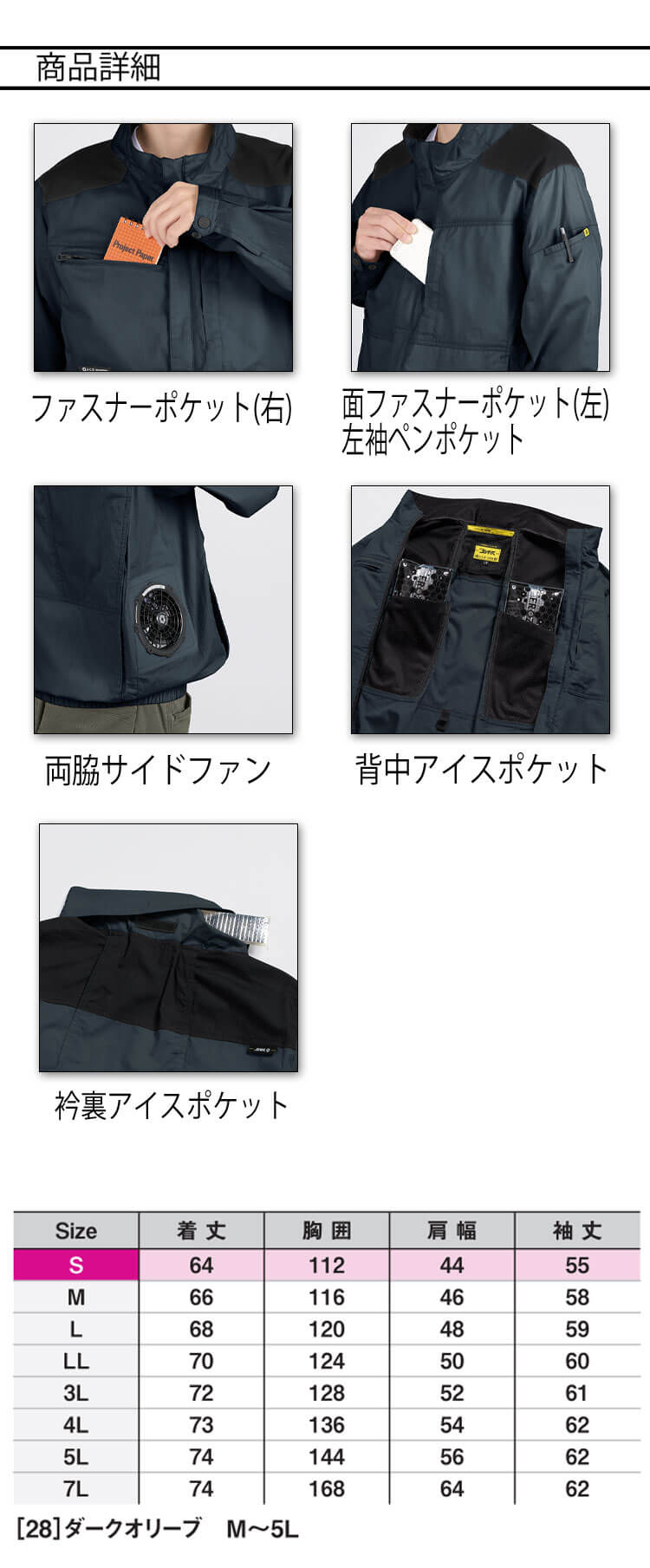 製品名: シンメン エスエアー S-AIR 長袖ジャケット(ファンなし) 05630 綿素材