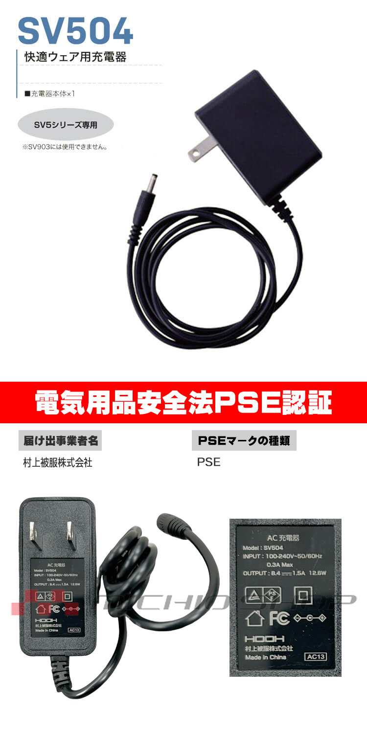HOOH 快適ウェア SV500シリーズ 充電器 SV504 村上被服